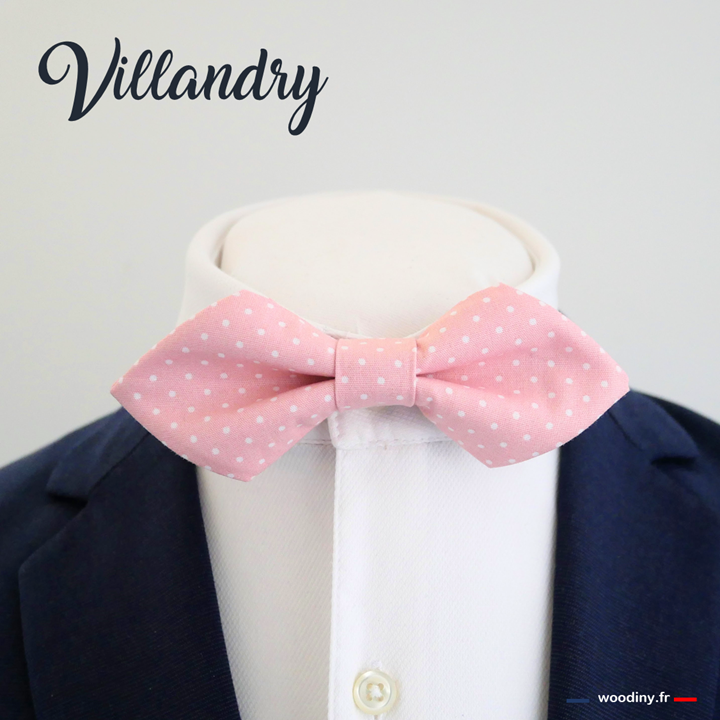 Noeud papillon rose à pois "Villandry"- forme en pointe